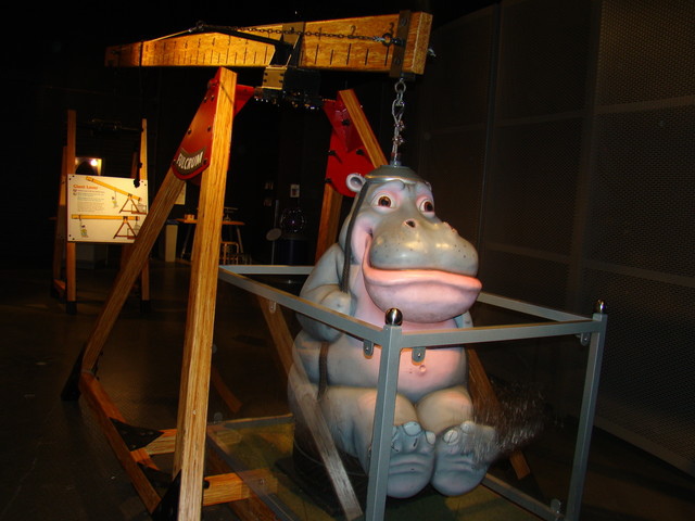 這是利用槓桿原理把非常重的河馬抬起來