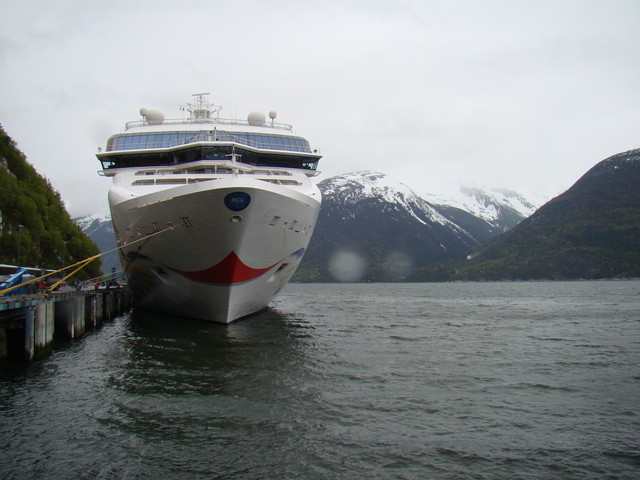 一下船就看到同一間郵輪公司的挪威寶石號 不知道下次有沒有機會坐坐看